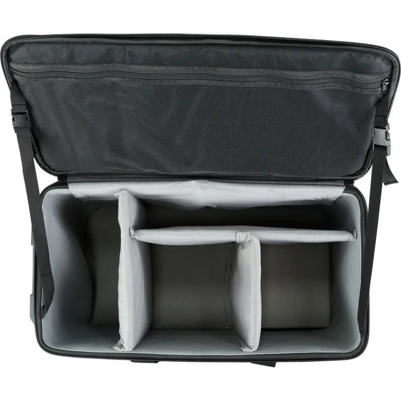 The trolley features wheels and a telescoping handle that makes it easy to transport the Evoke to any film set. It also has enough space to hold the included accessories that comes with Evoke 1200B. This case features custom, padded, interior compartments for organization and maximum protection of your lighting equipment