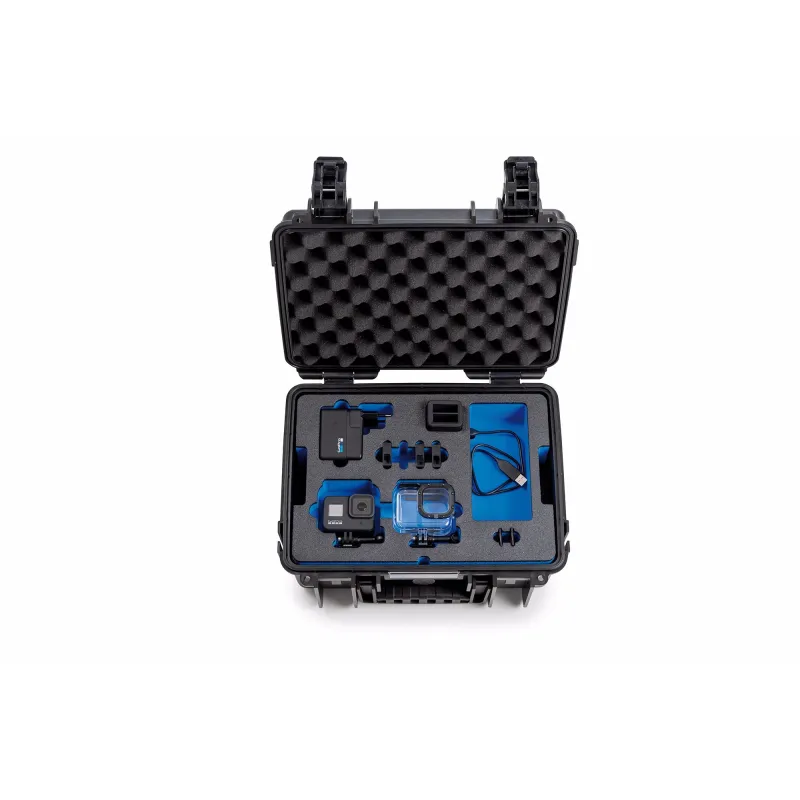 THE case for your GoPro! Thanks to its size and the two prefabricated foam layers it provides enough space for two GoPro Hero 8 and the necessary accessories: the waterproof housing, up to 8 batteries, dual charger, mounting brackets, cables and much more. Furthermore it is possible to charge two batteries directly in the case.