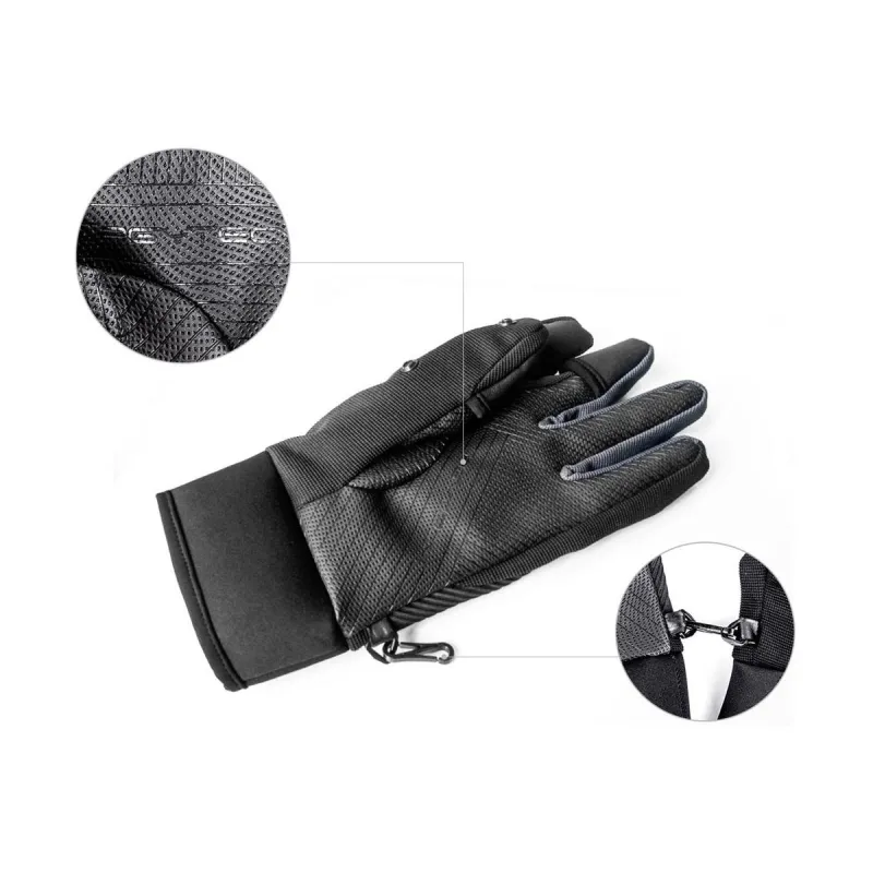 The gloves are designed to guarantee you maximum comfort. The non-slip coating on their inner side allows you to hold your camera, camera or drone controller comfortably and securely. You no longer have to worry about your equipment falling out of your hand. Adjustable Velcro straps at the wrists allow the product to fit your hands even better. In addition, special hooks allow you to clip the gloves together for easy storage.