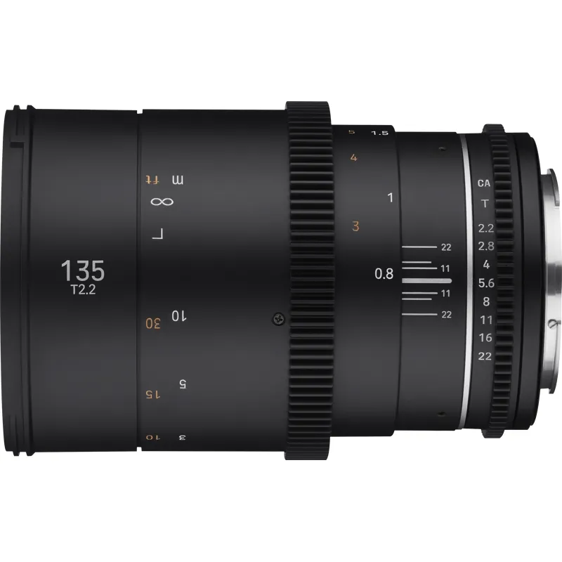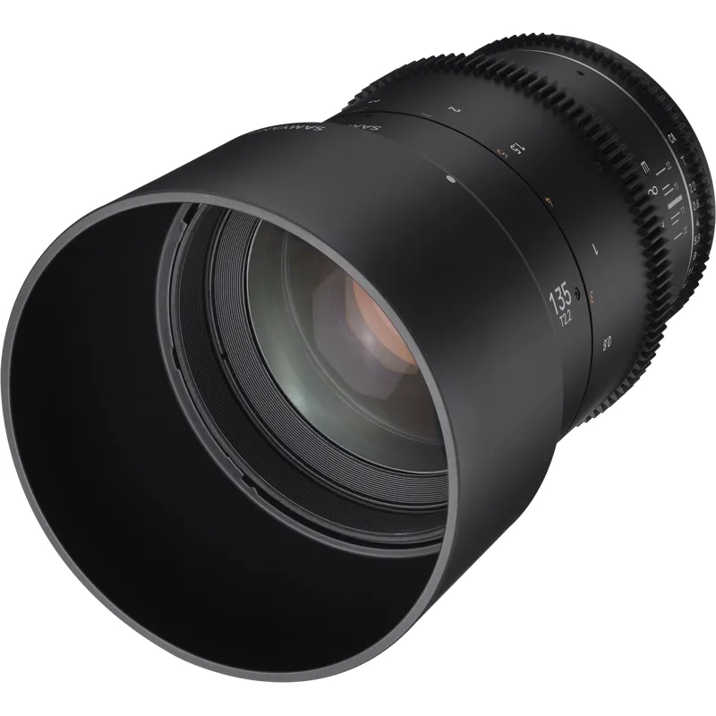 The compact size of Samyang's VDSLR lenses makes them perfect for hand-held and gimbal shooting. The VDSLR 135mm T2.2 MK2 is fully-featured with de-clicked aperture and focus gear rings. The long focus throw of over 130° enables cinematographers to focus precisely and exactly on their subjects, creating a more professional feel to video footage than with autofocus photo lenses.
