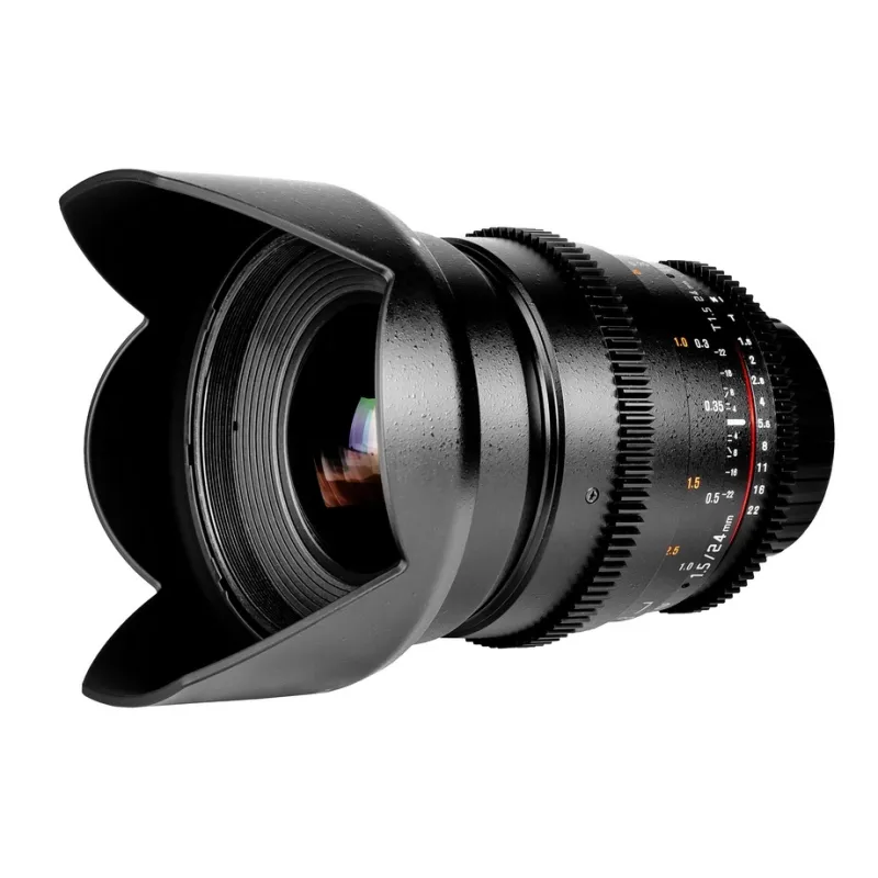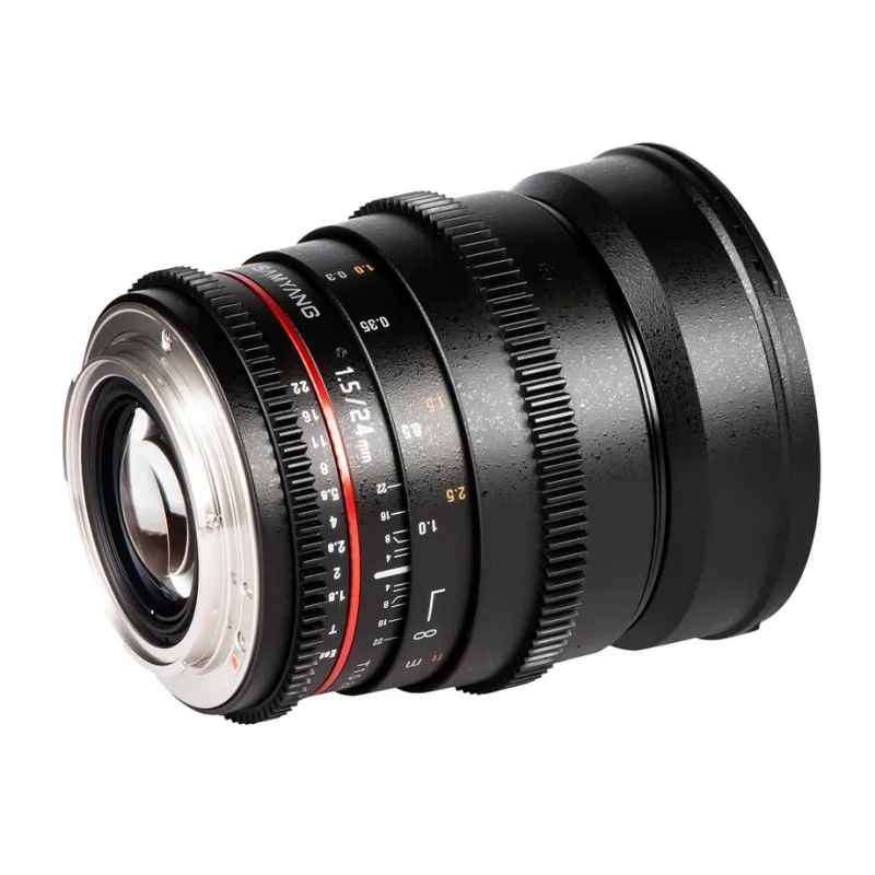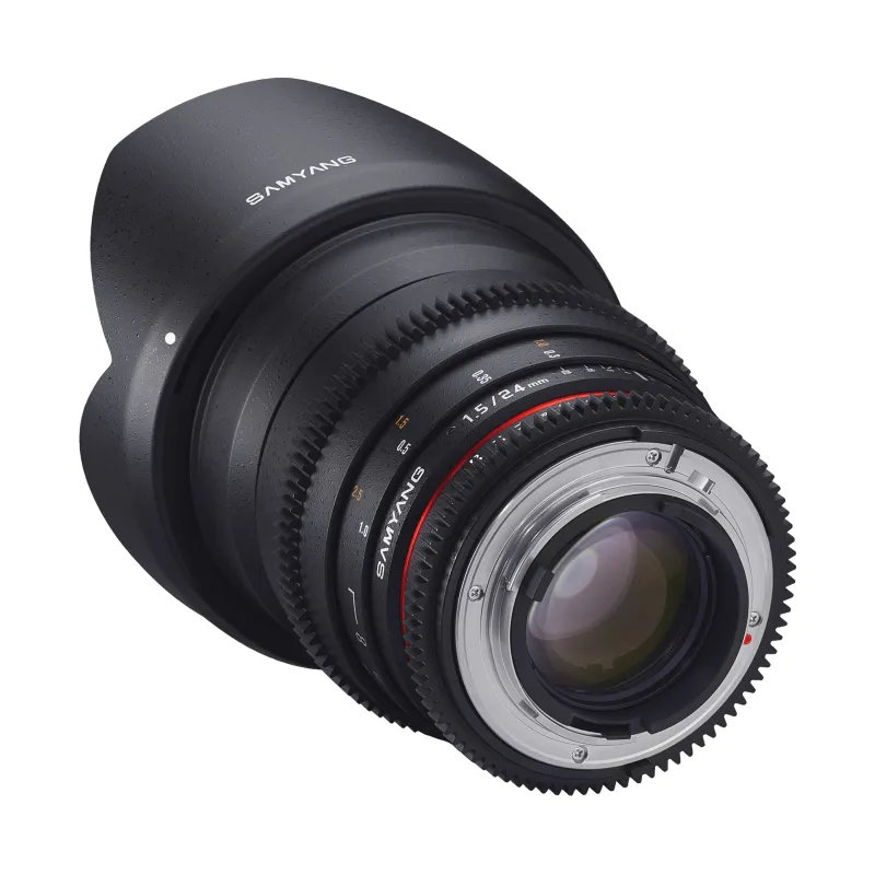 Samyang 24mm T1.5 ED AS UMC VDSLR (Video DSLR) version has been developed primarily for professional cine / movie making purposes where high quality fast prime lenses are the primary requirement. The VDSLR version feature follow focus gearing and decoupled aperture, which allow the user to smoothly and quietly change focus and aperture / depth of field whist filming, and link to professional follow focus cam systems.