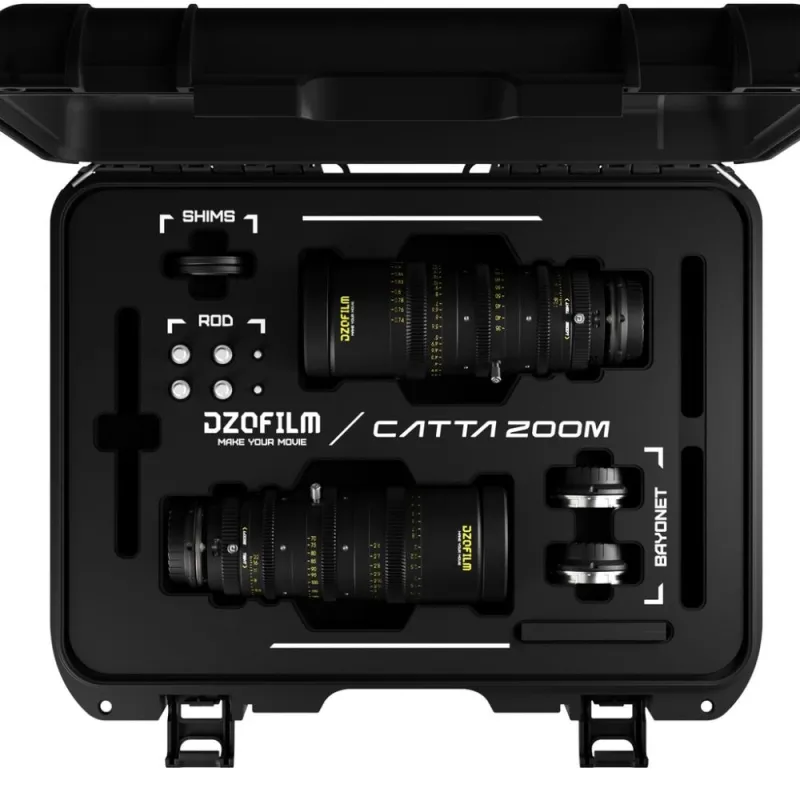 Add two full-frame zoom lenses to your production kit to cover multiple focal lengths and cameras with this Catta 18-35mm & 35-80mm T2.9 E-Mount Cine Zoom 2-Lens Bundle from DZOFilm. The kit includes a black Catta E-mount 18-35mm T2.9 zoom lens, a black Catta E-mount 35-80mm T2.9 zoom lens, two front lens caps, two rear caps, two shim sets, two support bases, and two support rods.