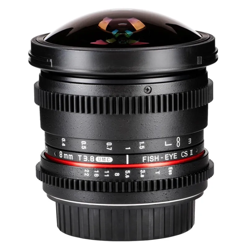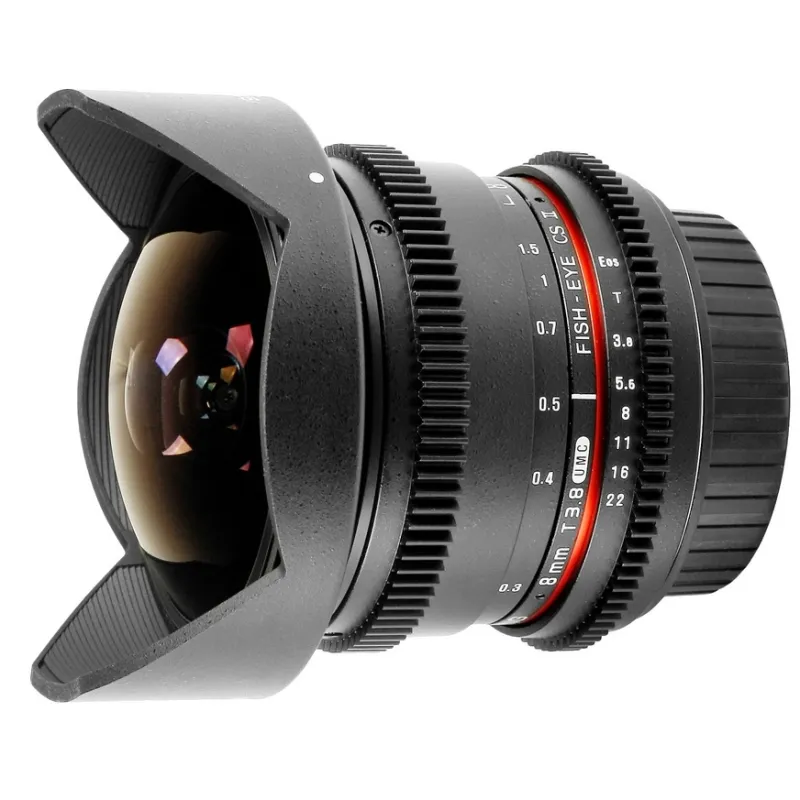 The Samyang 8mm T3.8 IF MC VDSLR Fish-Eye Lens is an ultra wide angle, Manual Focus objective for Canon HDSLRS. This lens is specially designed to get the best out of your Sony camera. Compatible with all Sony cameras with an e-mount. Gives an 180 degree image.