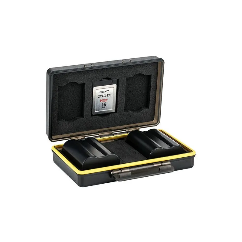 2 in 1 multifunctional battery case Suitable for batteries with a maximum size of 59x39x22mm With space for 2 batteries and 3 XQD memory cards Made of high quality materials Sturdy and durable Water and dirt repellent Optimal protection 2 year warranty