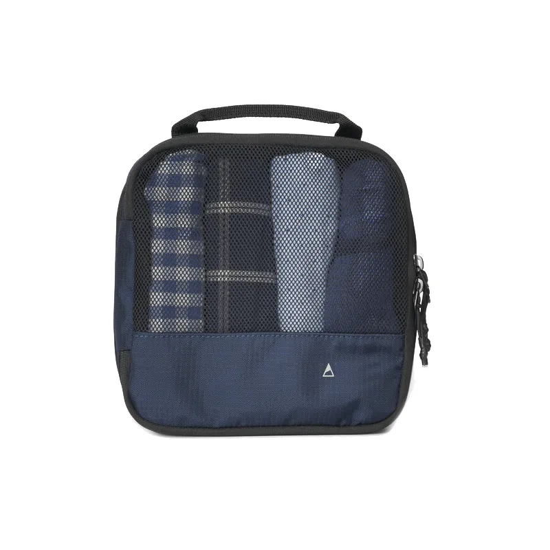 Iepakojiet efektīvāk ar mazo GOMATIC PACKING CUBE V2 SMALL, NAVY. Kubeļa izmēri ir 7.75 collas garumā un 7.75 collas platumā. Tam ir 5 collas dziļums, ko var samazināt par 50% ar uzticamo apjozošo rāvējslēdzēja saspiešanas sistēmu. Kubeļa materiāls ir viegls ripstop neilons, un tam ir acs priekšējā paneļa, lai jūs varētu redzēt, kas iekšā.