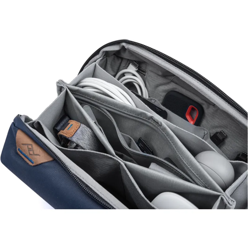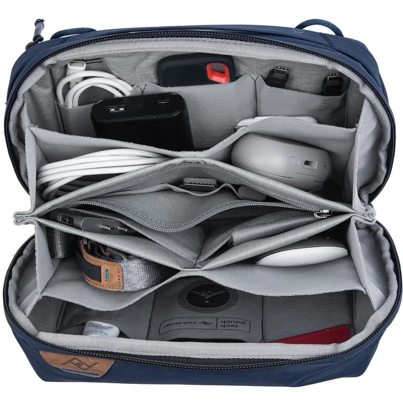 Neatkarīgi no tā, vai glabājat kabeļus, ikdienas piederumus vai ceļojuma nepieciešamības, Tech Pouch piedāvā nepārspējamu organizāciju un vieglu piekļuvi. Origami stila kabatas nodrošina milzīgu telpas efektivitāti, ļaujot jums iepakot vairāk mazākā telpā, vienlaikus saglabājot jūsu priekšmetus kārtībā un viegli atrodamus. Elastīgās aksesuāru cilpas nodrošina, ka tādi priekšmeti kā pildspalvas, naži, SD kartes un akumulatori vienmēr ir pa rokai. Ārējās rokturi un čaumalas stila atvēršana padara šo maisiņu patīkamu turēt un piekļūt. Ārējā rāvējslēdzēja kabata ir aprīkota ar kabeļa caurlaidumu, lai viegli uzlādētu ierīces. 400D pārstrādātā neilona kanvas apvalks ir ūdensizturīgs un estētiski tīrs.