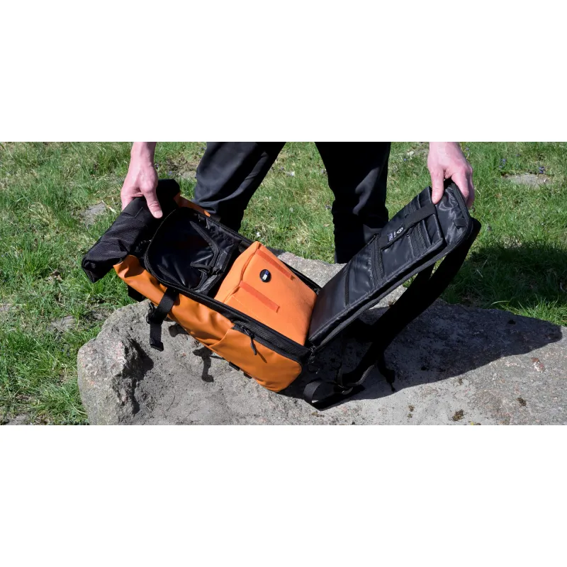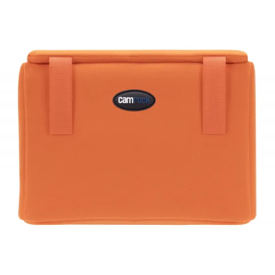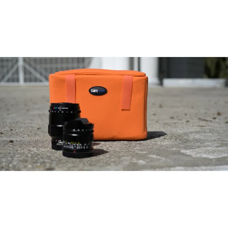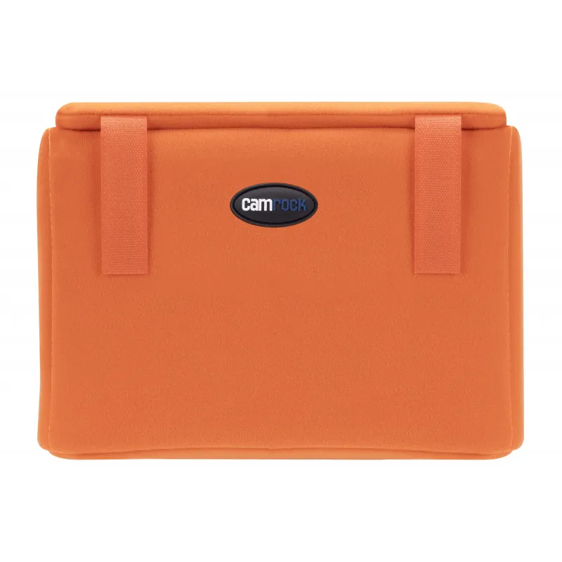 Camrock Cube 50 kameru korpuss, izmēri 27 x 12 x 19 cm, apvieno ērtu uzglabāšanu, aprīkojuma aizsardzību un mūsdienīgu stilu. Tas ir ideāli piemērots kā patstāvīgs korpuss vai kā papildinājums lielākiem kameru somām, mugursomām vai koferiem. Pateicoties izturīgajai neilona auduma konstrukcijai, 3 mm biezajai putu kārtai un izturīgajam PE, tas efektīvi aizsargā jūsu aprīkojumu no triecieniem, skrāpējumiem, putekļiem un mitruma. Iekšējais ieliktnis var turēt, piemēram, DSLR kameru ar objektīvu, 1-2 papildu objektīvus un zibspuldzi. Elastīgi nodalījumi ļauj pielāgot iekšpusi jūsu vajadzībām. Īpašas kabatas atmiņas kartēm nodrošina ērtu uzglabāšanu mazām piederumiem. Spilgti oranžā krāsa piešķir ieliktņam mūsdienīgu izskatu un ļauj to viegli atrast jūsu somā.