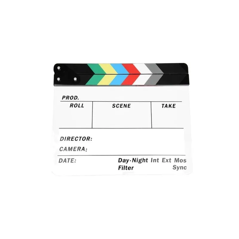 Light, camera, action!! Film flap is used for editing, video production, photography and much more where you need to visibly mark the scene being captured or synchronize audio layers even based on a known click. The flap is made of plastic and can be marked with a marker.