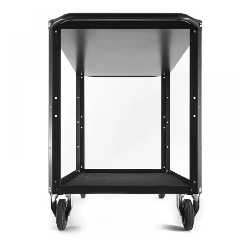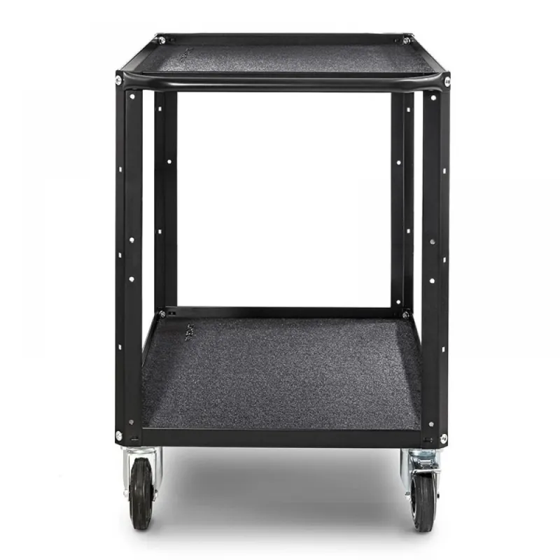 Two-shelf cart completely in black steel (RAL 9005). Large version.
