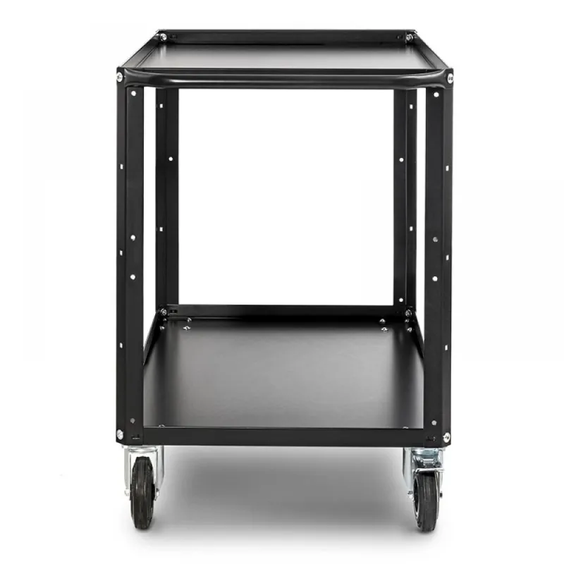 Two-shelf cart completely in black steel (RAL 9005). Large version.