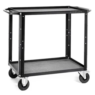 Two-shelf cart completely in black steel (RAL 9005). Small version.
