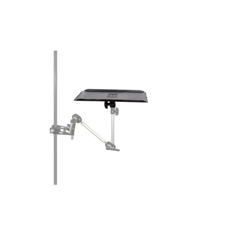 The StudioKing MC-1120-S laptop stand is a versatile and stable solution to use your laptop. You can place your laptop on the stand and secure it easily with the included Velcro for added security. Perfect for exhibitions, events and presentations! Moreover, the stand is not only suitable for your laptop, but also for other accessories such as a photo camera. In addition, the stand is not only suitable for your laptop, but also for other accessories. In combination with a tilting bracket and spigot adapter (available as an option), you can also tilt the plate and, for example, place a brochure or iPad on the edge. These can be secured using the supplied Velcro strap set.