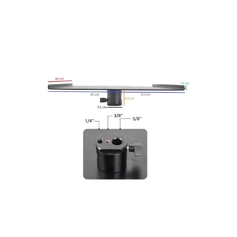 Compared to its predecessor MC-1020, this stand is 10 cm wider and 3 cm longer. This means that it now also offers space for the larger laptops, up to approximately 23 Inch. The Studioking MC-1120-S is equipped with three types of female threads: 1/4", 3/8" and 5/8". This allows you to place this stand on almost all stands (see optional accessories). In addition, the laptop holder also has an Arca Swiss connector on the underside, which makes it suitable for heads with this connection. The MC-1120-S weighs only 1.7 kg.