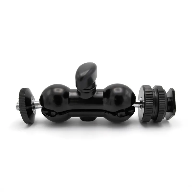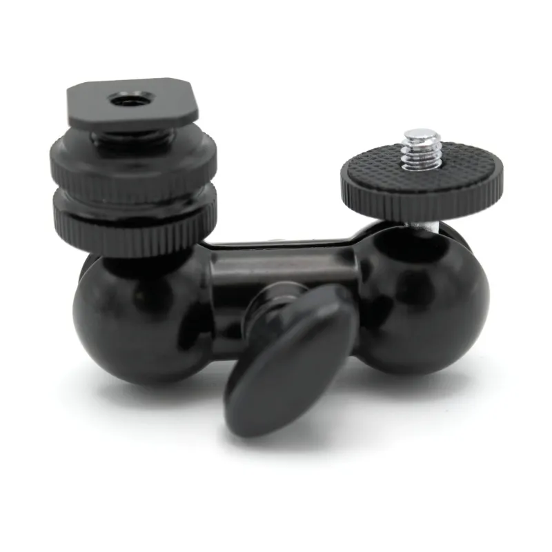 The Caruba Dual Bll Head Bracket is a convenient mounting plate with a ball head on each side. The bracket is provided with a 1/4" male screw thread on the top, so you can mount a camera or camera accessory. The bracket is provided with a 1/4" female tripod connection at the bottom. The ball head on each side make it easy to position and adjust your camera to every setup. The ball head can easily be locked with the twist clamp, after you are done with positioning.