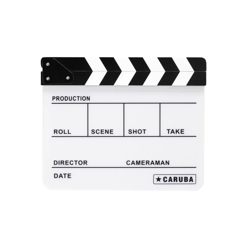 This plastic Caruba Professional Director Clapper (whiteboard marker) is a very useful tool for filmmakers and videographers. With this clapperboard, synchronizing image and sound is a piece of cake. In addition, you can use the clapperboard to mark certain scenes and takes. The sharp "clap" sound produced by the clapper board is easy to identify in the audio track, and the closing of the clapstick can be easily found in the video track. The two tracks can then be precisely synchronized by matching the sound to the movement.