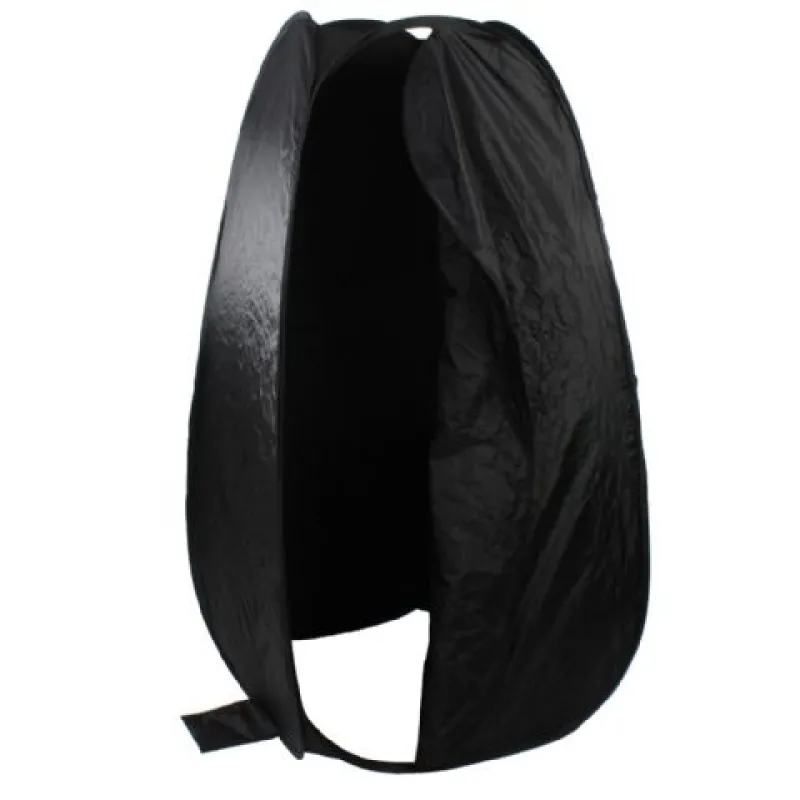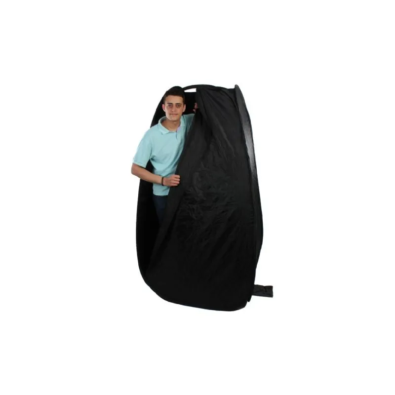 ;This foldable changing room can be easily taken to any set in the handy black nylon bag with zipper. Within seconds the tent is setup and ready for use, so your model can change clothes in there. This offers your models privacy whereever necessary. After usage the tent can be folded as quickly again and be stored in the bag.