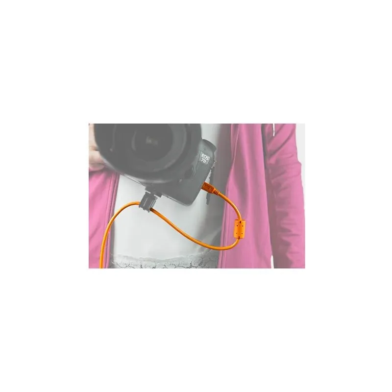 TetherPro kabelis pieslēdzas kamerai, izmantojot Micro-B 5 Pin portu. Tas ir izstrādāts un ražots atbilstoši augstākajām USB specifikācijām, nodrošinot lielisku veiktspēju ātrumā un uzticamībā. Ja nepieciešams pieslēgties attālumos, kas pārsniedz 15 pēdas, apsveriet iespēju izmantot USB 2.0 aktīvo pagarinājumu, lai saglabātu signāla integritāti un samazinātu troksni.