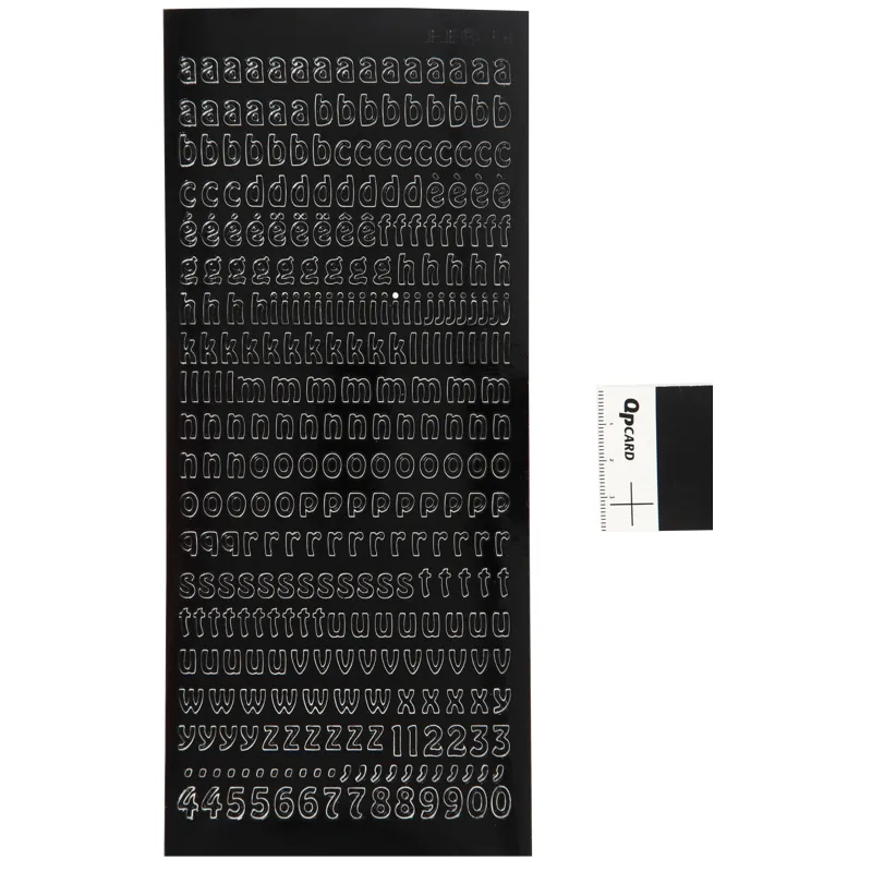 Selfadhesive stickers in black foil. Commoner letters in a smaller size.