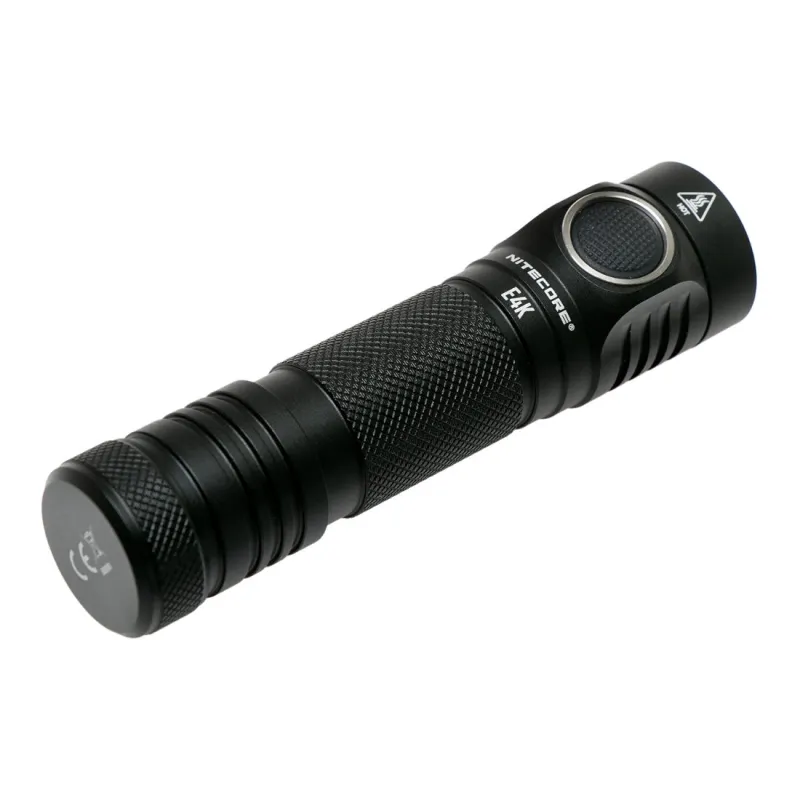 The Nitecore E4K is distinguished by its lightweight and ergonomic design, making it easy to store and easy to use. What's more, the use of aircraft-grade aluminum and a hard anodizing process (military grade HA III) translates into a durable product. In addition, the flashlight is IP68 water resistant and resistant to drops of up to 2 meters. It can also be safely submerged to a depth of 2 m.