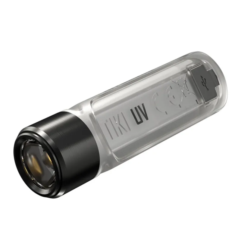 Nitecore TIKI UV Keychain Light Utilizes a primary luminous SST-10 UV LED ( radiant Power: 1,000mW; wavelength: 365nm) and is equipped with 2x auxiliary high CRI white LEDs ( CRI>90; Color Temperature; 4500K)