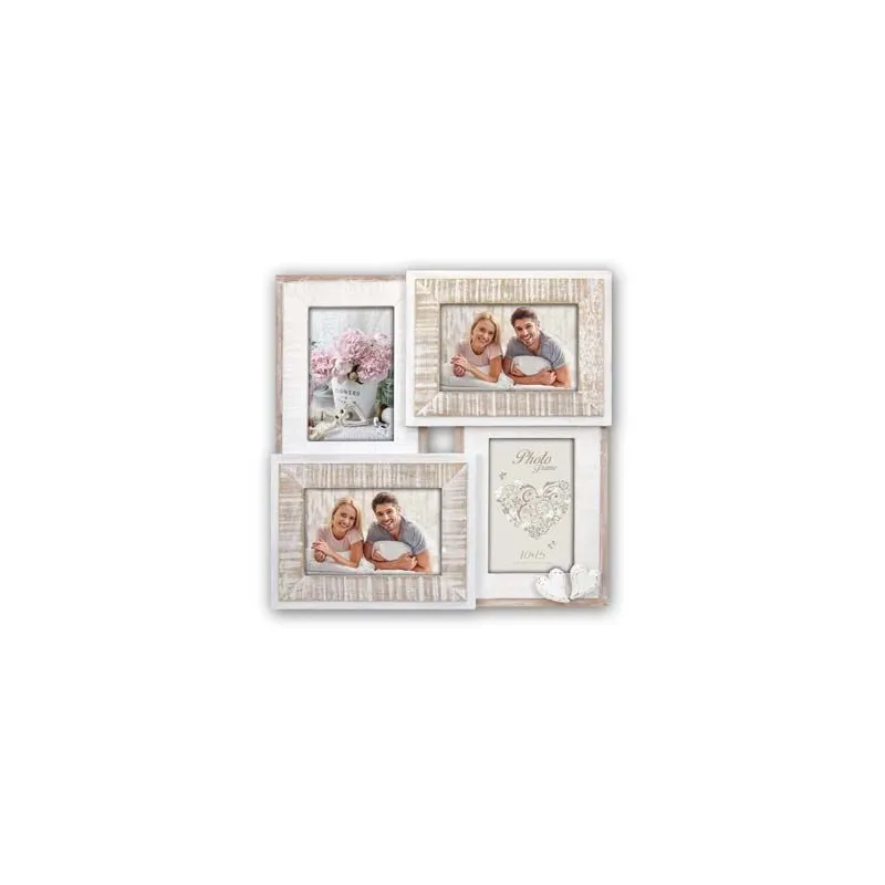 Zep Photo Frame WW435 Molveno ir koka fotorāmis, kas piemērots 4 fotogrāfijām 10x15 cm izmērā katrai. Tam ir vintage balts un dabīgs koka rāmis, kas paredzēts vairākām fotogrāfijām. Sienas versijai ir dažādos līmeņos pārklātie rāmji un 3D sirds formas dekors ar mīlestības motīvu. Kopējie izmēri, ieskaitot rāmi, ir 35x35 cm (platums x augstums).