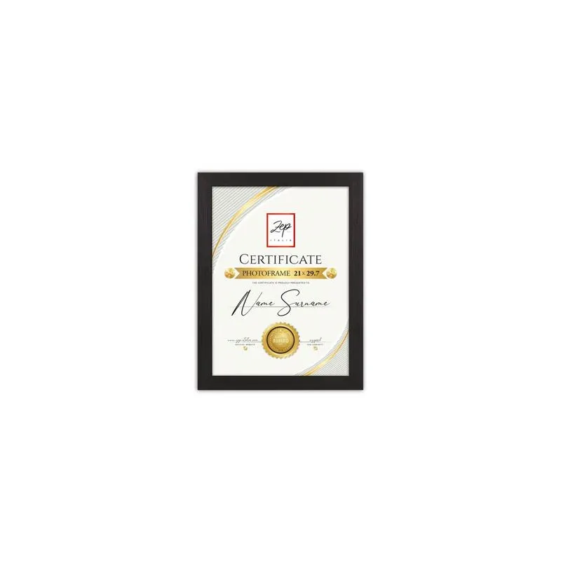 Zep Italia V4721B ir melns fotorāmis, kas piemērots 21x29,7 cm fotogrāfijām. Rāmim ir koka izskats.