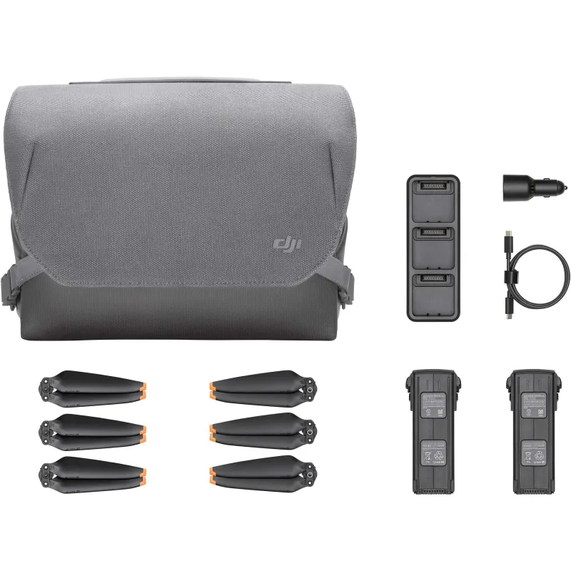 Sagatavojieties garai filmēšanas dienai, papildinot savu aprīkojumu ar DJI Fly More komplektu Mavic 3. Šajā komplektā ir inteliģento lidojuma akumulatoru pāris Mavic 3 droniem, 100 W akumulatora uzlādes mezgls, 65 W automašīnas uzlādes mezgls un trīs pāri zema trokšņa līmeņa propelleru. Katrs akumulators pievieno papildu 46 minūtes lidojuma laika, un abi lādētāji nodrošina to gatavību lidojumam. Ar 100 W lādētāju var secīgi uzlādēt līdz pat trim akumulatoriem vienlaikus, savukārt 65 W lādētājs nodrošina akumulatora un tālvadības pults barošanu ceļā. Trīs precīzo propelleru pāri ir veidoti tā, lai nodrošinātu aerodinamisko efektivitāti, vienlaikus līdz minimumam samazinot trokšņa līmeni, un komplektā iekļautā pārnēsāšanas soma ļauj ērti pārvietot visu no vienas vietas uz otru.