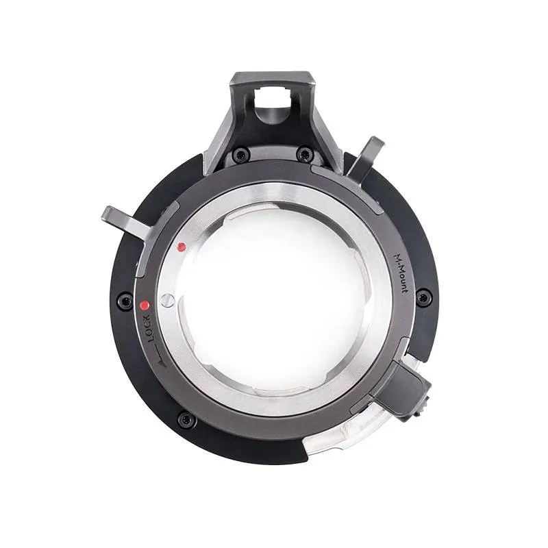 The DJI Zenmuse X9 M Mount Unit supports interchangeable lens mounts and is compatible with DJI Zenmuse X9-6K and DJI Zenmuse X9-8K gimbal cameras. It will successfully support DJIs proprietary DL mount, but also third-party mounts such as the Leica M. Ultra-wide, macro, and anamorphic lenses, which are compatible with traditional cinema cameras, also work with the X9, providing flexibility when choosing a lens. Additionally, the product is compatible with the X9 Focus Motor and allows focusing on manual lenses.