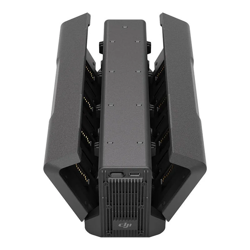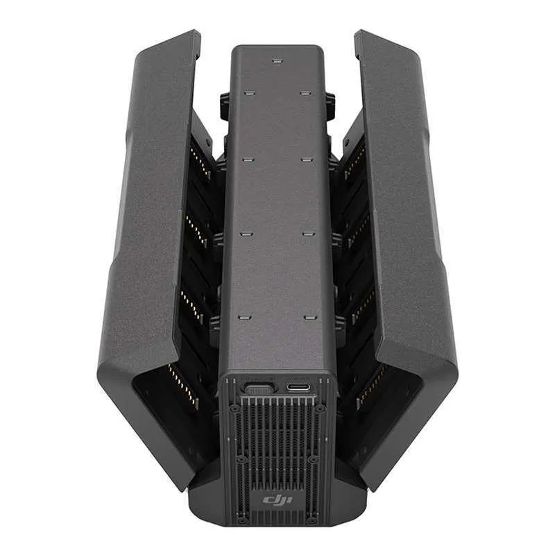 Integrēts, salokāms centrs, kas optimāli apvieno augstu veiktspēju un jaudu. Tas ļauj uzglabāt līdz 8 akumulatoriem un ātri tos uzlādēt. Ko tas nozīmē praksē? Ātrajā režīmā ierīce var uzlādēt 2 akumulatorus līdz 90% apmēram 35 minūtēs, un 8 akumulatorus līdz 100% apmēram 160 minūtēs. Nav nepieciešams gaidīt pārāk ilgi! Vēl vairāk, papildu 65W USB-C ports ļauj uzlādēt DJI RC Plus kontrolkameru.