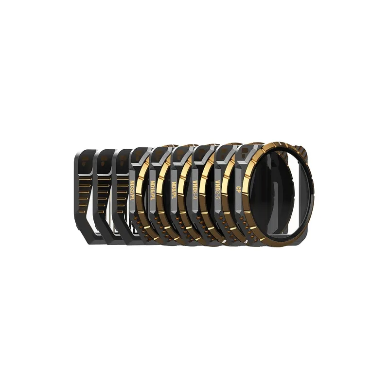 Filmu veidotājiem, kas izmanto no gaisa uzņemtus kadrus, lai uzlabotu savu saturu, šis PolarPro režisoru filtru komplekts DJI Mavic 3 un Mavic 3 Cine palīdzēs jūsu kinematogrāfijas darbiem ar plašu filtru izvēli, kas nodrošina gaismas pārvaldību un efektus. Kopā jūs saņemsiet deviņus dažādus filtrus: 2 līdz 5 pakāpju VND, 6 līdz 9 pakāpju VND, ND8/PL, ND16/PL, ND32/PL, CPL, Mist 1/4, BlueMorphic un GoldMorphic. Papildus tam, ka tiek samazināts kardānam krītošās gaismas daudzums, jūsu uzņemtajos kadros var samazināties izkliedētā gaisma, atspīdumi, izgaismojumi un kontrasts, kā arī pievienot vizuālos efektus, piemēram, izlīdzināt un mīkstināt objektus vai anamorfam līdzīgus zilas/zeltainas krāsas efektus.