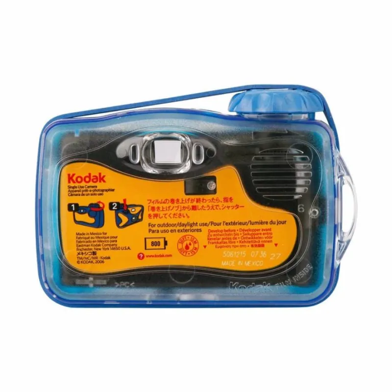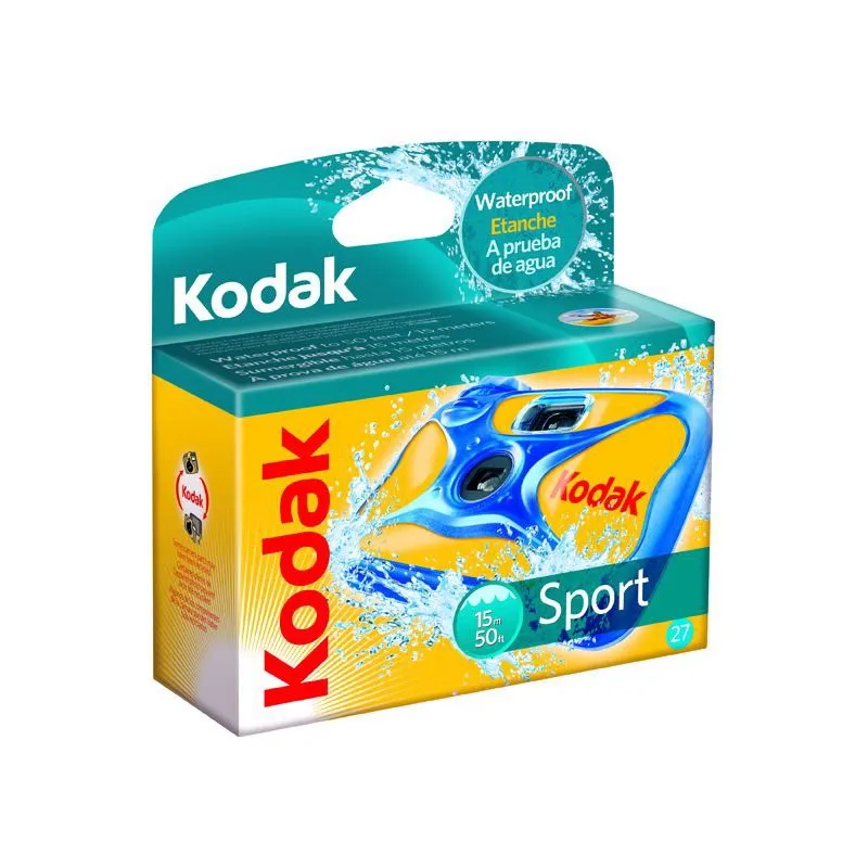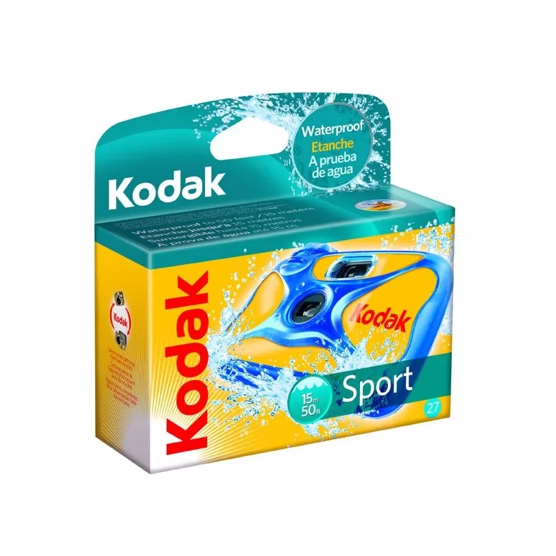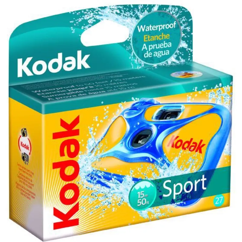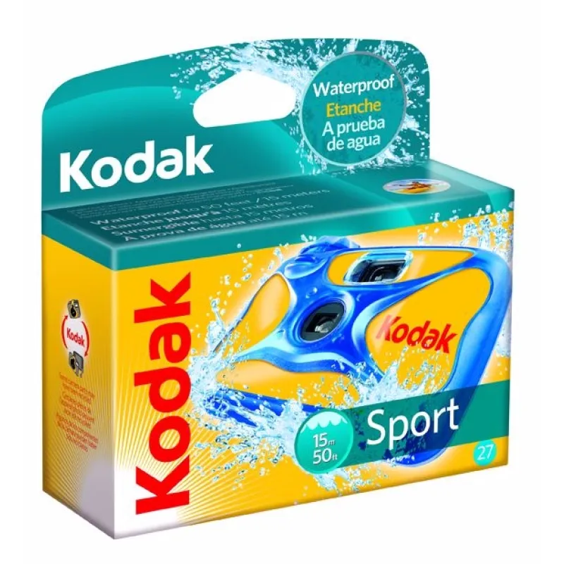 Kodak Sport vienreizējās lietošanas kamera, 27 ekspozīcijas, ūdensizturīgs līdz 50 pēdām (ražotājs pārtrauca ražošanu);Nirēji un snorklieri, tveriet dzīves dzīvīgumu 50 pēdu dziļumā zem ūdens.^Nav izplūdušu attēlu no saules aizsarglīdzekļa traipiem; Izvairieties no smilšu un sniega radītām skrāpējumiem, kas var sabojāt attēlus.^Izturīgs, izturīgs, triecienizturīgs gumijas apvalks.^Lieliski piemērots nelīdzeniem braucieniem un akmeņainām takām.^Kodak MAX Versatility Plus 800 Filma. Nirēji un nirēji, tveriet dzīves vibrāciju 50 pēdu dziļumā zem ūdens. Nav izplūdušu attēlu no sauļošanās līdzekļa traipiem; Izvairieties no smilšu un sniega skrāpējumiem, kas var sabojāt attēlus. Izturīgs, izturīgs, triecienizturīgs gumijas apvalks. Lieliski piemērots nelīdzeniem braucieniem un akmeņainām takām. Ar Kodak MAX Versatility Plus 800 plēvi Vienreiz lietojama kamera, kas radīta, lai izdzīvotu tur, kur parastā kamera neiztur! Izgatavots ar izturīgu, izturīgu un triecienizturīgu rāmi; ūdensizturīgs līdz 50 pēdām (15 m); skrāpējumiem izturīgs objektīvs, šo vienreizlietojamo kameru var izmantot praktiski jebkurā āra situācijā uz zemes vai ūdens. Kodak MAX Versatility Plus Film paceļ attēla kvalitāti jaunā līmenī, apvienojot zemāka ātruma filmu krāsu kvalitāti, smalkas detaļas un attēla skaidrību ar lielāka ātruma filmu priekšrocībām. Šī filma nodrošina papildu asumu un nepārspējamu smalku graudiņu (800 ātrumu filmās), lai attēli būtu skaidrāki un skaidrāki, pat ja tie ir palielināti. Kodak MAX Versatility Plus Film rada nemainīgi spilgtas, dinamiskas krāsas dažādos apgaismojuma apstākļos. Tas nodrošina precīzu ādas toņa atveidi dabiska izskata "cilvēku attēliem".