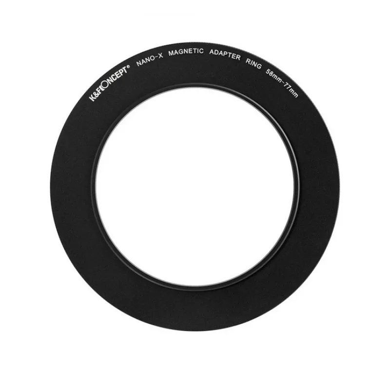 K&F 58-77mm Magnetic Filter Adapter Ring ļauj izmantot lielākus filtrus ar objektīviem, kuriem ir mazāki vītņu izmēri. Izgatavots no aviācijas pakāpes alumīnija sakausējuma, šis adapters ir gan izturīgs, gan triecienizturīgs. Tā anodizētā melnā virsma samazina atspīdumus fotografēšanas laikā. Adapters nodrošina stabilu pievilkšanu ātrai uzstādīšanai un noņemšanai, un ir saderīgs ar visiem K&F Concept magnētiskajiem objektīvu filtriem.