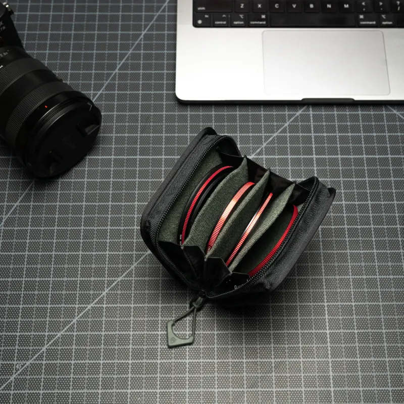 WANDRD Lens Filter Case in Wasatch Green ir izstrādāts īpaši dizaineriem. Šī izturīgā soma var uzglabāt līdz 4 lieliem objektīvu filtriem, nodrošinot to aizsardzību pret skrāpējumiem, putekļiem un triecieniem, saglabājot tos ideālā stāvoklī.