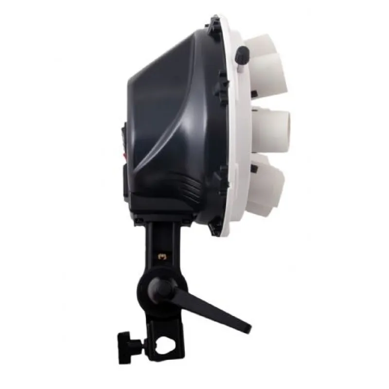 Optional spiral lamps can be purchased if you wish to have more light. The 28W bulbs can be replaced with 5 40W, 55W, 70W or 85W lamps. The maximum light output is 2125W, which is equivalent to 5 85W spiral lamps. Further, a reflector can be used instead of the supplied octabox. Such optional accessories can be found in the optional accessories tab below.