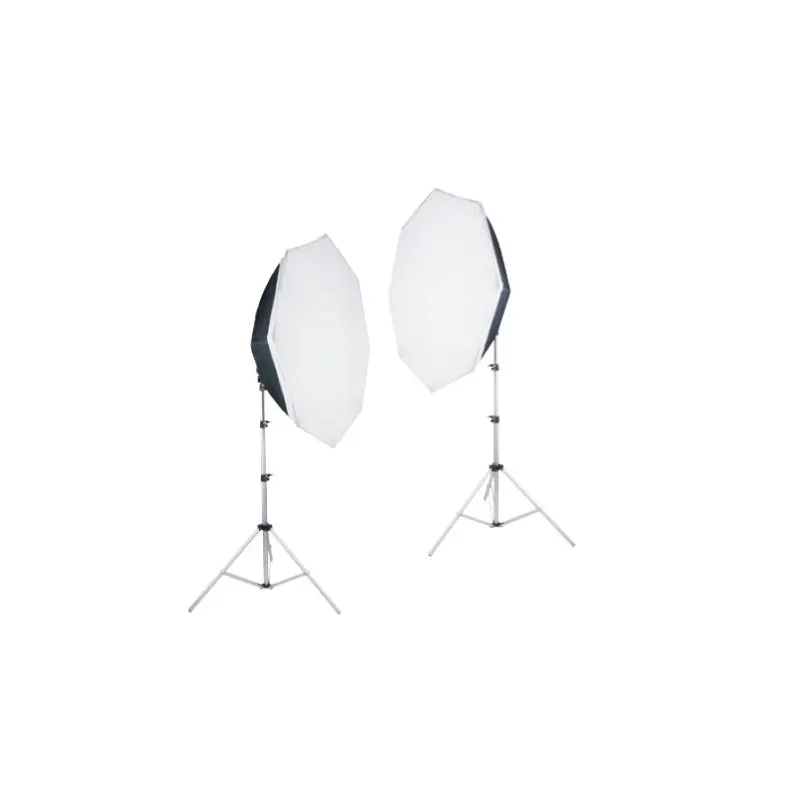 The Falcon Eyes LHD-B928FS Daylight Kit contains two LHD-B928FS lamp holders, two octaboxes (80cm), eighteen 28W energy saving spiral lamps each with a power comparability of 140W and two W805 light stands (2.35m).