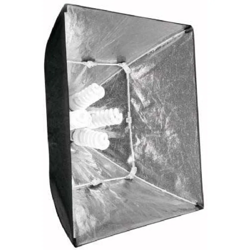 The Falcon Eyes LH-ESB6060K Continuous Daylight Set contains two standard lamp holders each with a foldable 50x50cm softbox, two diffuse cloths (50x50cm), eight 40W energy saving spiral lamps with a power comparability of 200W each and two i-2501/B light stands (2.5m).