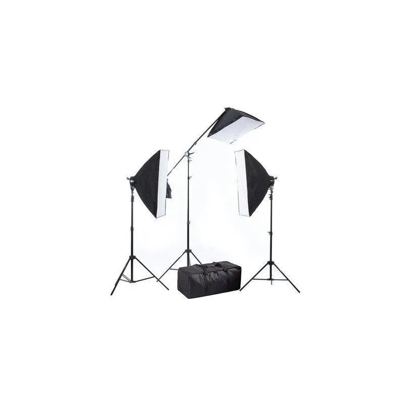 Viegli lietojams dienas gaismas komplekts ar trim fotostudijas gaismām un praktisku galvu vai augšējo gaismu profesionālām produktu fotogrāfijām un videoklipiem.