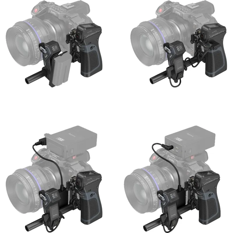 The Wireless Receiver Motor can be powered by the included SmallRig Battery Plate 3777 with NP-F batteries or by USB-C to D-tap Cable 3266 and USB-C to DC cable 3268 with V-Mount batteries.