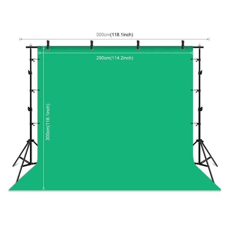 This set includes 3 fabric backdrops in green, red and blue color, so there is something for everyone. The dimensions of the backdrops are 3 x 2.9m, which increases the freedom of use. Depending on your preference, you can use the backdrops for photo shoots, vlog recording, etc.