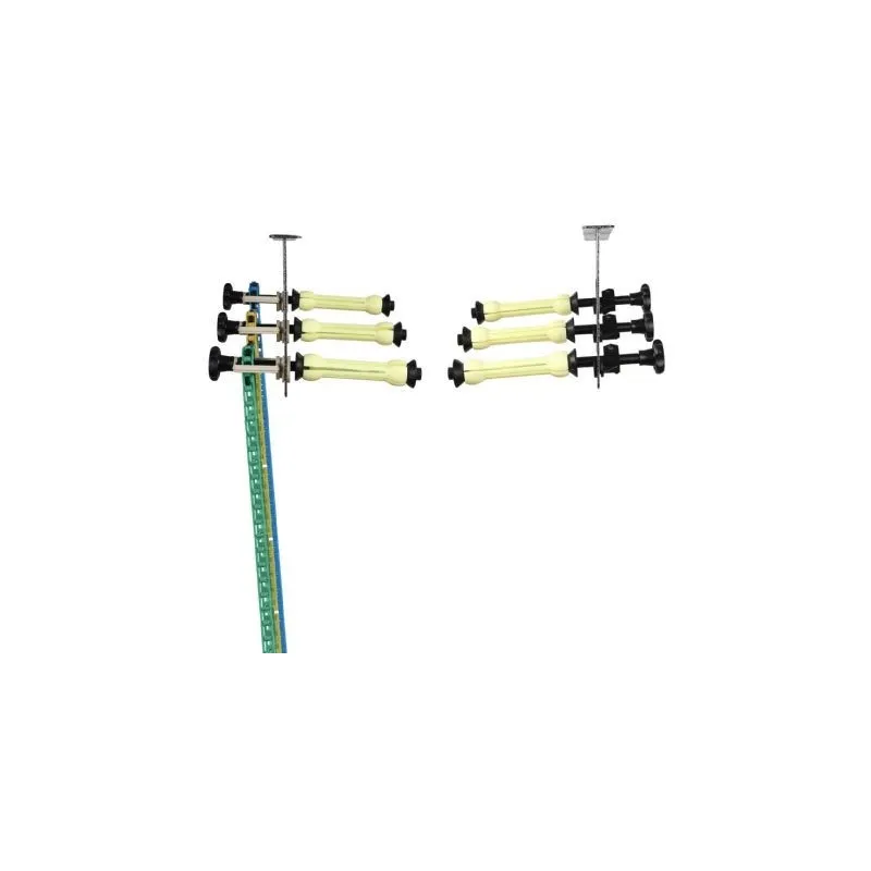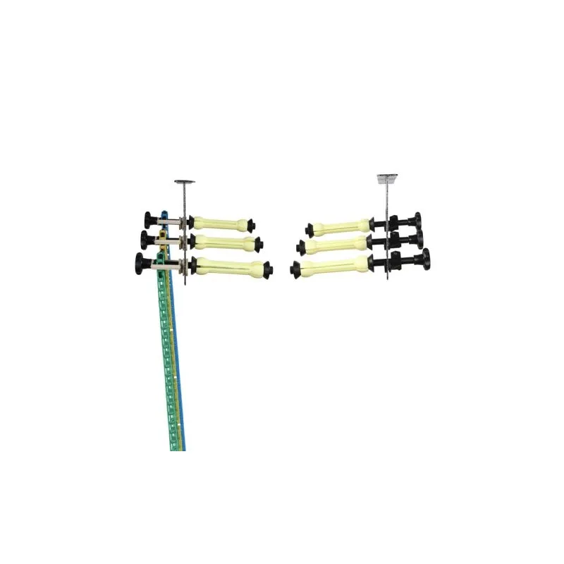 ;Sistēmu var montēt pie griestiem vismaz 10 cm attālumā, un lietotājam ir iespēja noteikt platumu. Kronšteini ir 32 cm augsti, 21 cm dziļi un 7 cm diametrā. Ķēdes ir aptuveni 1,70 m garas, un ruļļu turētāji ir izvirzīti aptuveni 12 cm garumā.