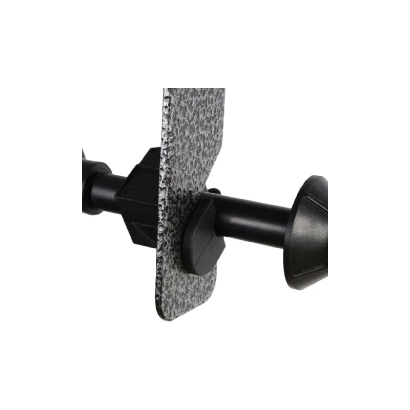 Falcon Eyes Background Support B-3W ir universāla piekāršanas sistēma, ko izmanto, lai piekārtu līdz 3 foniem. Sistēmu var viegli piestiprināt pie sienas vai griestiem. Turklāt, izmantojot 4 x CL22 (kas ir atrodams zemāk esošajā cilnē “Izvēles piederumi”), B-3W var piestiprināt pie gaismas statīva. Tiek piegādāti divi ruļļu turētāji. Uz ruļļa turētāja bez ķēdes jūs atradīsiet grozāmo pogu, kas ļauj regulēt, cik viegls vai smags papīrs ripo nost. Pēdējā attēlā redzama ciparnīca.