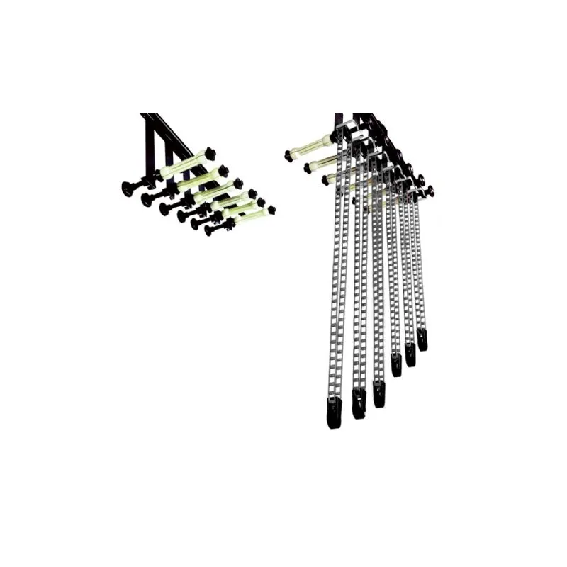 The StudioKing MBG-2006 Background Support is a universal hanging system used to hang up to six backgrounds. The system can easily be fixed to the wall or ceiling. The holder is easiy attachable to a wall or ceiling. Once placed on the holder, the background roll can be secured by fastening the holder causing the clamps to expand and in turn, ensuring the background roll is secured. The supplied guides ensure the chains stay in place while the chains allow the user the easily roll the background paper up and down.