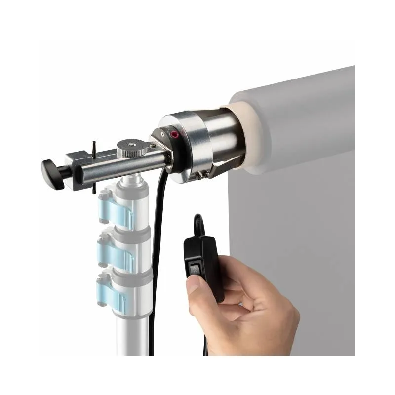 The BRESSER MR-300 electric background system was developed to optimize available space in your studio. The background mount is designed for 1 background roll and comes with a remote control .