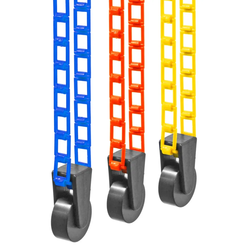 Ar ķēdītēm fonu var uztīt līdz vajadzīgajam garumam. Šai sistēmai nav bremžu. Tāpēc mēs iesakām papildus iegādāties vienu vai vairākas fona ruļļu skavas. Ķēžu krāsas var atšķirties no attēlā redzamajām.