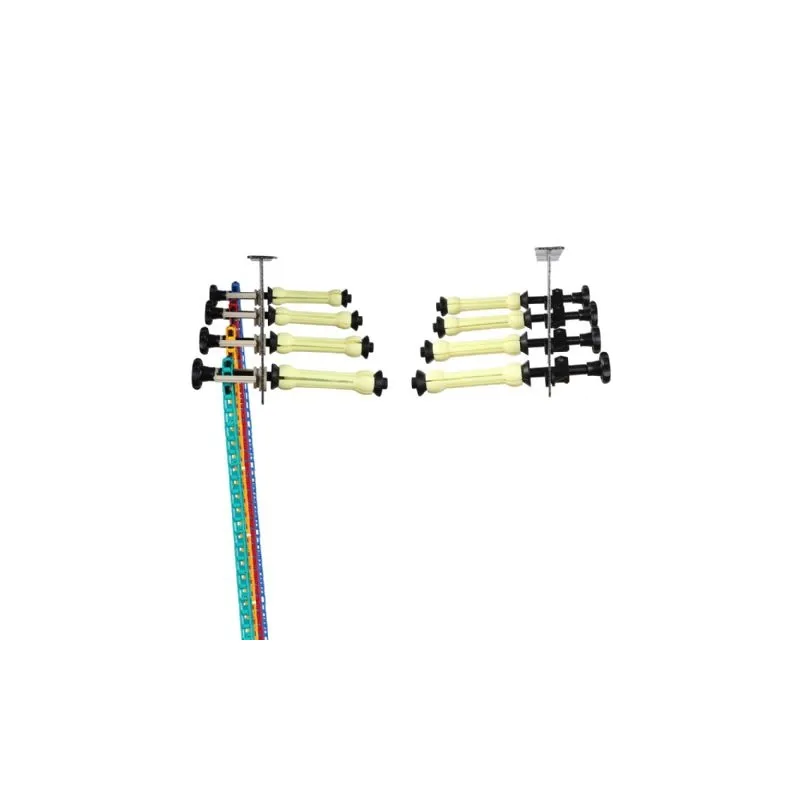 ;The system can be mounted to the ceiling at a minimum distance of 10cm with the user having the ability to determine the width. The brackets are 40cm high, 24 cm deep and have a diameter of 7cm. The chains are approximately 1.70m long and the roll holders protrude at an approximate length of 12cm.