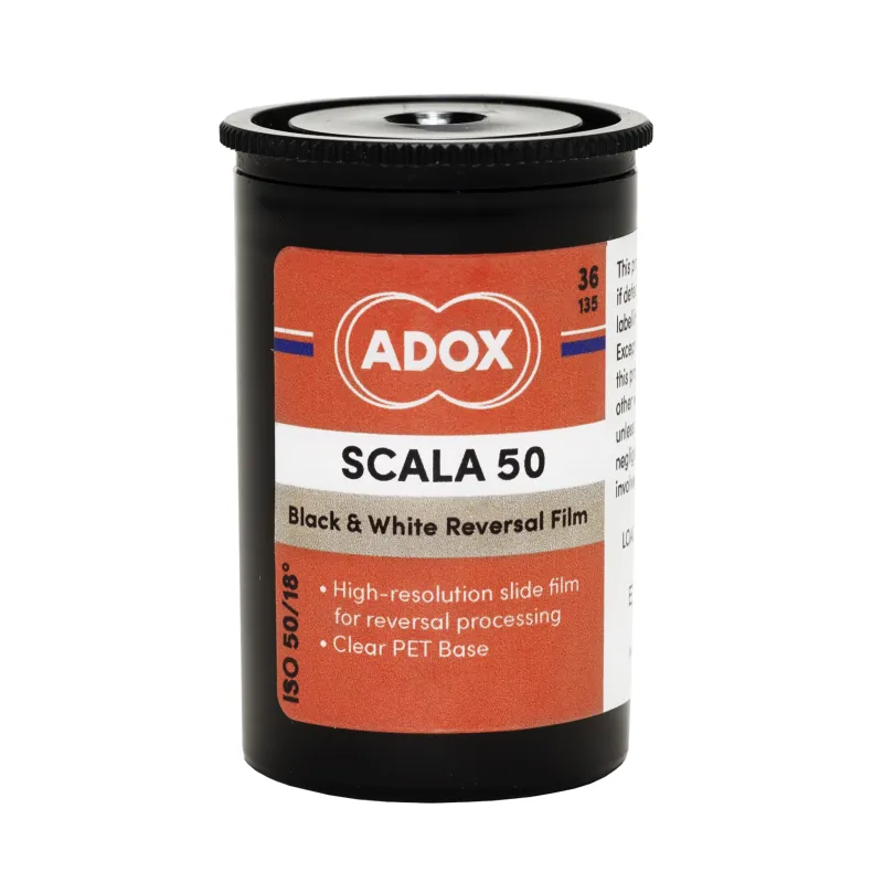 Scala 50 melnbaltā apvērsuma filma no Adox ir augstas izšķirtspējas panhromatiska melnbalta apvērsuma filma ar ļoti smalkgraudaina struktūra.