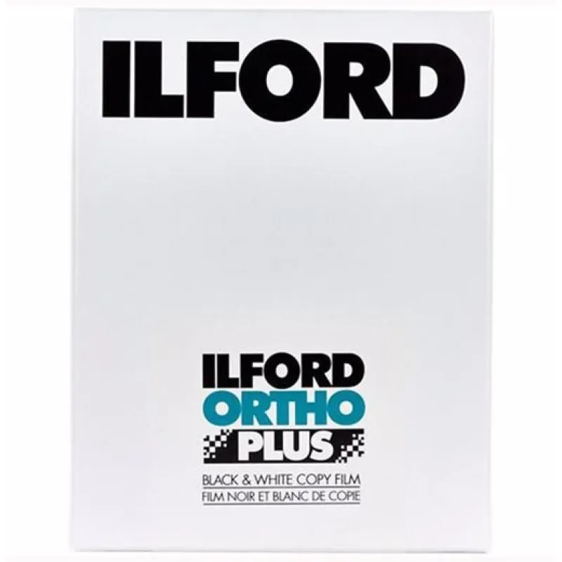 Ilford Ortho Plus is a medium speed black and white negative orthochromatic film that is especially well-suited for continuous tone copy or reproduction work, as well as for half-tone, technical, and forensic applications. It has a nominal sensitivity of ISO 80/20° when exposed under daylight conditions, or ISO 40/17° when exposed under tungsten lighting, and can be developed in standard black and white chemistry. Additionally, since the film is only sensitive to blue and green light, it can be handled under red safelight conditions and developed by inspection for precise processing control. Its high-resolution, fine grain structure and long tonal range also make it ideal for producing faithful reproductions of original artworks and documents, as well as for photomicroscopy.