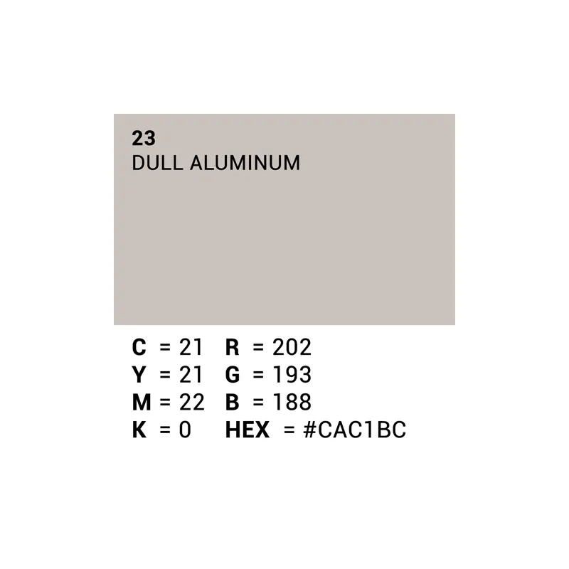 This roll of Superior Specialties backdrop paper is a 1.35 x 11m roll in the color 23 Dull Aluminum, or bright grey. With this roll of professional quality paper you can create a smooth, even background.