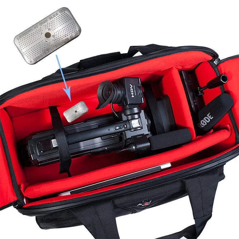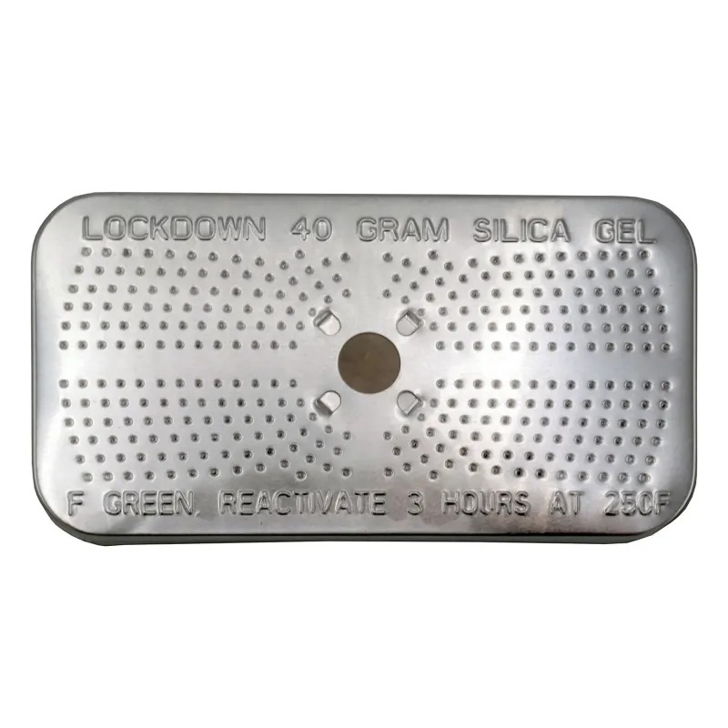 The Caruba Silica Gel Case is a handy and small aluminum box with silica gel granules to protect your precious equipment from moisture, rust and mildew. Ideal for use in your photo bag or backpack. The beads have an orange color that changes to green when reactivation is needed. You can reactivate the box by heating it for three hours in an oven at 120 degrees Celsius.