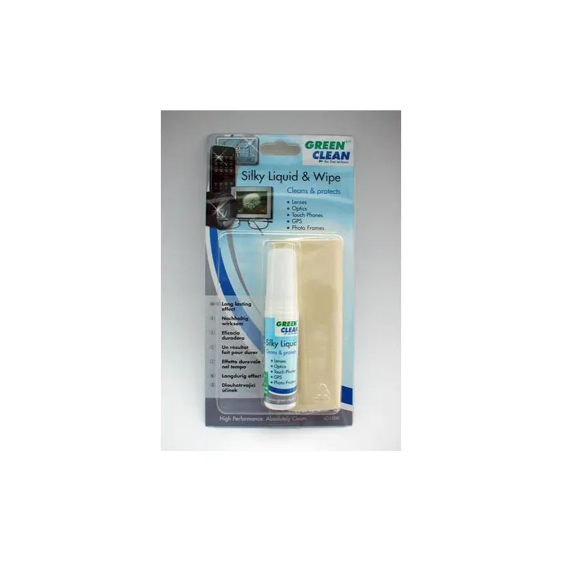 Šis praktiskais, ērti izmantojamais komplekts apvieno sevī tīrīšanas šķīdumu SILKY LIQUIDE, kas ietverts nelielā pudelītē ar pumpi, un pulēšanas drāniņu SILKY WIPE. Pateicoties šī speciālā tīrīšanas šķīduma netīrumus atgrūdošajam efektam, pat tādas ikdienā lietojamās ierīces kā mobilie telefoni un plaukstdatori saglabā dzidru un tīru virsmu. Taukus un sviedrus var viegli noslaucīt.